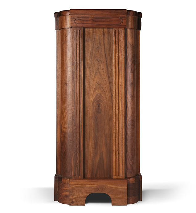 雙層箱體結構,主箱體采用進口胡桃實木裝飾,可有效消除箱內駐波減少箱體諧振,確保無音染、聲音干凈.準確。整個箱體重量到達了57公斤,為進一步增強低頻效率,使用一個大容積箱體和雙低音反射孔設計。